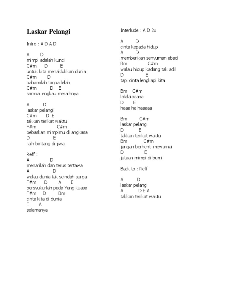 2 thoughts on Lirik dan Not Angka. C Dm Am G 2x C Semua yang berlalu F Biarkanlah berlalu Dm G Seperti hangatnya mentari B-CSiang berganti malam F. Lirik dan Chord Lagu Suatu Saat Nanti dari Hanin Dhiya Berikut ini adalah lirik dan chord lagu Kepompong dari Sindentosca.